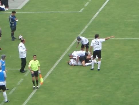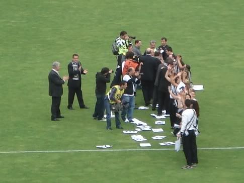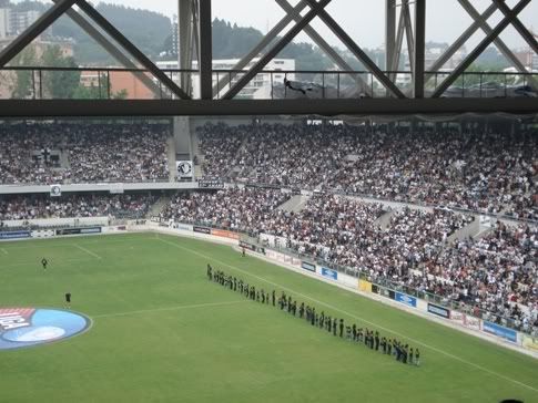 O jogo acabou com muitos dos quase 30 mil Vitorianos presentes a invadirem o relvado para poderem festejar de perto com os jogadores. Assim terminou o calvário Vitoriano no Inferno da segunda Liga Nacional. Que este pasadelo sirva de exemplo para o futuro e que acima de tudo sirva para nos fortalecer. Como já alguém disse: Grande não é quem anda toda a vida em pé. Grande é quem cai e arranja forças para se levantar ainda mais forte. E os Vitorianos estão certamente mais fortes e ...